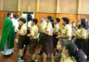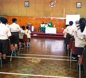 HIDUPKATOLIK.COM-BANYAK setan ada di tempat ini. Kata-kata ini dilontarkan Kepala Paroki Ratu Rosario Jagakarsa Pastor F.X Sutarno MSF dalam Perayaan Ekaristi Pembukaan Tahun Ajaran baru 2019/2020 di Aula Persekolahan Don Bosco Pondok Indah, Jakarta Selatan, Rabu, 7/8.