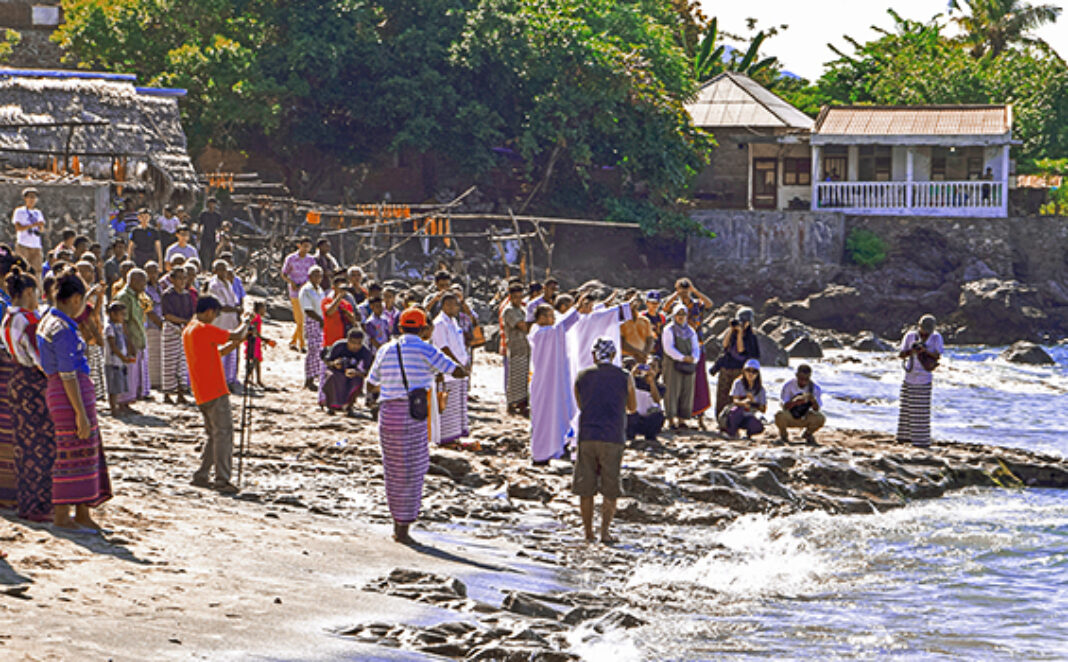 Di tengah pantai tampak sebuah meja persembahan. Meja itu untuk Misa Arwah yang digelar nanti malam. Lalu, besok pagi umat merayakan Misa Lefa–perayaan pembukaan untuk musim bekerja di laut bagi para nelayan). Di pesisir pantai lain, saya melihat beberapa tua adat yang dipimpin oleh kepala suku dari tiga suku induk yakni suku Lika Telo (Blikololong, Lefotuke, dan Bataona).