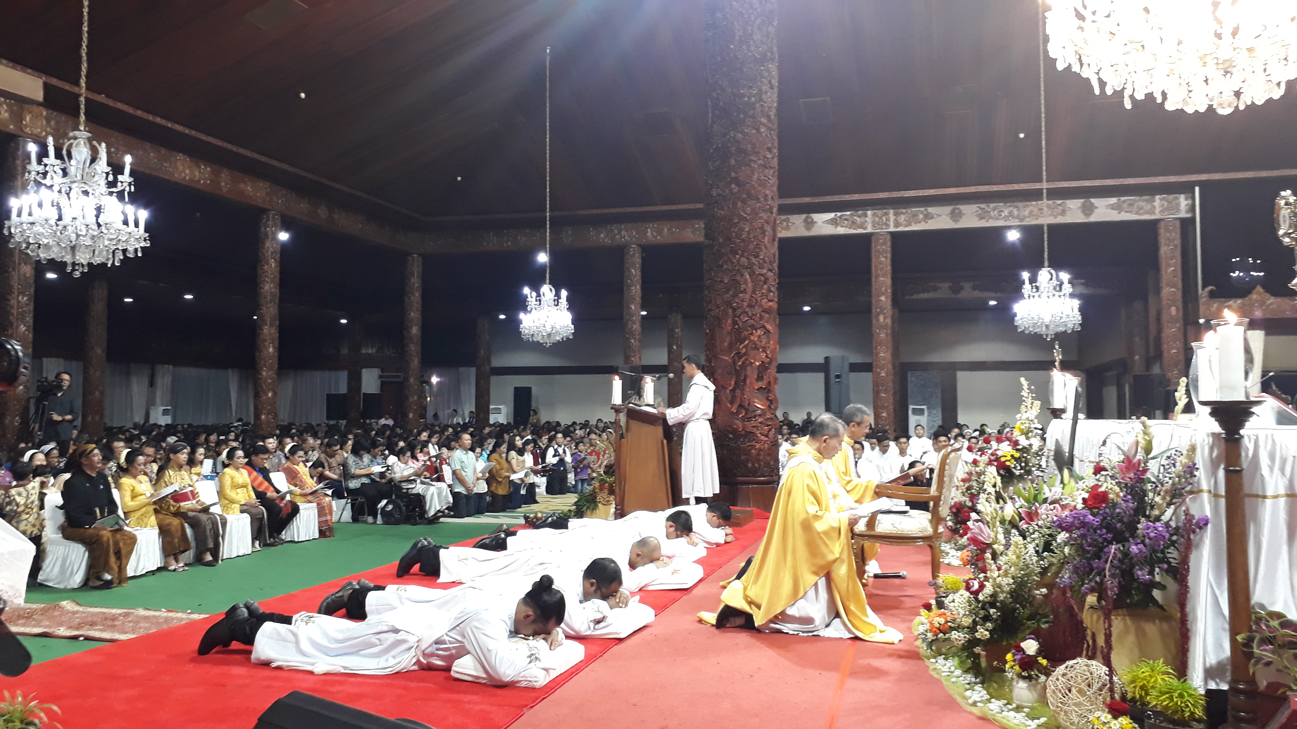USKUP Agung Jakarta, Mgr. Ignatius Suharyo, menahbiskan lima imam baru di Sasono Langen Budoyo, Taman Mini Indonesia Indah, Kamis, 15/8. Menyampaikan selamat kepada para imam baru, Mgr. Suharyo dalam khotbahnya mengatakan keputusan iman yang diambil para imam baru adalah tanggapan menuju kesempurnaan kesucian dan kesempurnaan kasih. “Proficiat atas keputusan iman yang Anda semua atas keputusan iman yang anda semua ambil untuk menanggapi panggilan Tuhan untuk kesempurnaan kesucian, kesempurnaan kasih, melalui jalan imamat,” kata Bapa Uskup. Jalan imamat, kata Mgr. Suharyo, adalah salah satu dari sekian banyak jalan lain untuk menanggapi panggilan Tuhan.