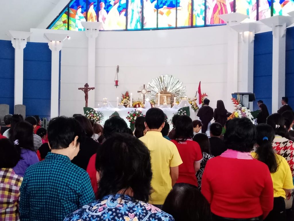 HIDUPKATOLIK.COM– Sekitar ratusan umat dari berbagai keuskupan memadati Kapel Maria Bunda Karmel, Lembah Karmel, Cikanyere, Puncak, Jawa Barat. Umat berbondong-bondong datang untuk merayakan Hari Kemerdekaan Republik Indonesia ke-74 dengan adorasi sepanjang hari bersama Ordo Putri Karmel dan Carmelitae Sancti Eliae (CSE).
