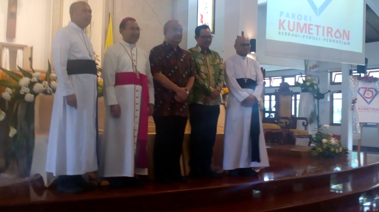 Sebelumnya, Uskup Rubiyatmoko dalam homilinya tak mampu menutupi rasa bangganya karena pesta berlian paroki ini dikemas bagus dengan mengusung tema Berbagi-Peduli-Perhatian. Berlian dimaknai suka berbagi, peduli dan perhatian. “Kita semua diajak untuk mewujudkan kepedulian dengan berbagi dalam masyarakat yang multikultural,” ujar Mgr Rubi.