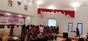 Senada dengan Daniel, Sekretaris Nasional FMKI Veronica Wiwiek Sulistyo dalam sambutannya menekankan bagaimana peran FMKI harus terlibat dalam merawat Pancasila yang akhir-akhir ini dirongrong oleh ideologi-ideologi lain.
