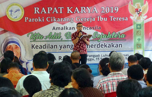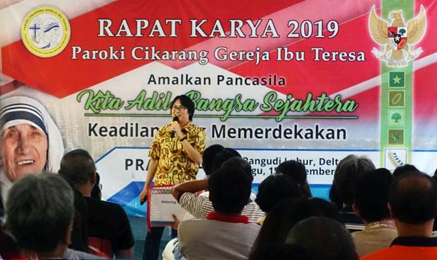 “Dalam peran sertanya, umat diharapkan memiliki dua kompetensi etis yaitu bela rasa dan kerja sama. Ketika melihat ketidakadilan, umat diharapkan mau berbela rasa dan tidak hanya tergerak, namun bergerak dan bekerja sama dengan umat lain melawan ketidakadilan,” kata Romo Paroki Cikarang Rm. Vinsensius Arifin, Pr, saat membuka acara.