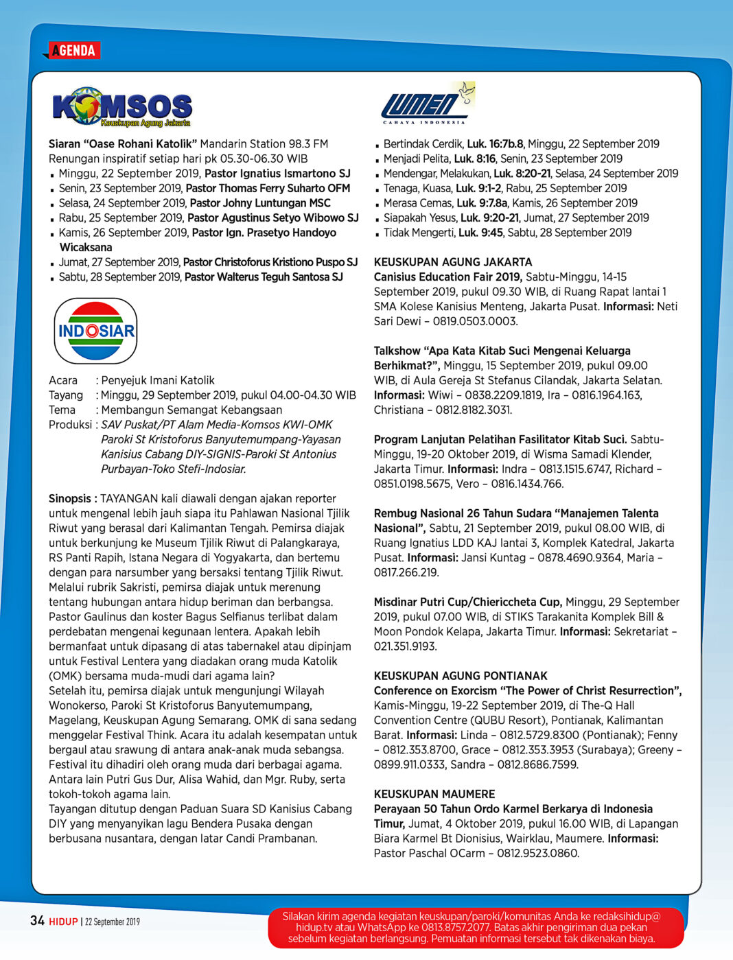 HIDUPKATOLIK.com – Agenda HIDUP Edisi ke-38