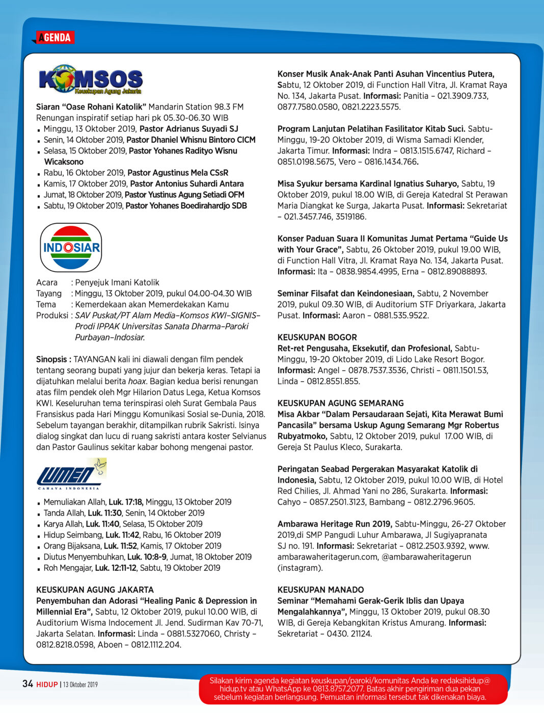 HIDUPKATOLIK.com – Agenda HIDUP Edisi ke-41