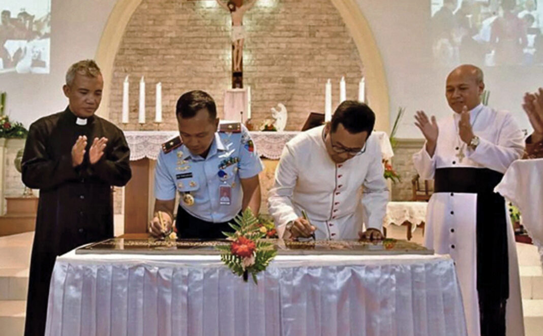 “Awal rangkaian acara lustrum ke-2 pada Agustus lalu OMK kami ajak merefleksikan sebagai bangsa, juga ziarah ke Monumen Perjuangan TNI AU di Ngoto,” ujar Pastor Paroki St Mikael Pangkalan TNI AU Adisutjipto Yogyakarta, Romo A.R. Yudono Suwondo, Minggu, 22/9. Menyadari kekhasan paroki ini terletak di kompleks TNI AU, maka kehadiran Gereja St Mikael Pangkalan harus berdampak untuk upaya merajut kebersamaan. “Kami ingin keberadaan gereja ini tak hanya bermanfaat untuk umat sendiri, tapi bagi Indonesia,” jelas Romo Wondo.