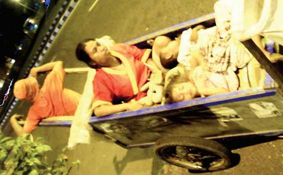 Gerobak mereka terbuat dari kayu yang berwarna abu-abu. Ada sebuah tulisan yang menyayat hati pada samping kanan gerobak, “setetes keringat harapan anak dan isteri.” Hanya berbekal gerobak,