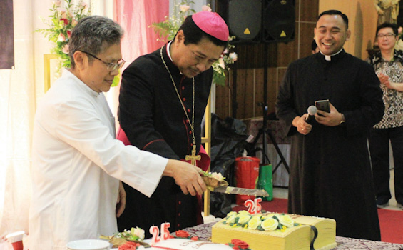 HIDUPKATOLIK.com – Tenda beratap putih telah terpasang, ratusan umat bersama rintik hujan menyambut dengan sukacita perayaan syukur pesta perak tahbisan Presbiterat Uskup Purwokerto, Mgr. Christophorus Tri Harsono dan Romo Marcus Santoso. Misa Syukur ini diadakan di Katedral Beatae Mariae Virginis Bogor, Jawa Barat, Kamis, 6/2.