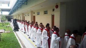 HIDUPKATOLIK.COM– LEBIH dari 50 imam berjalan perlahan-lahan masuk ke dalam Kapel Seminari Menengah Stella Maris Bogor, Telaga Kahuripan, Parung, Jawa Barat, Senin (24/3).