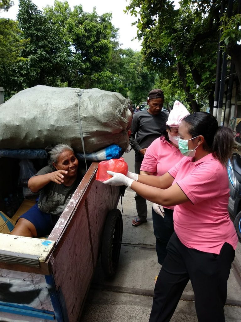 Hati WKRI Cabang Ignatius Loyola, Jl. Malang, Jakarta Pusat pun terketuk hatinya untuk berbagi kasih kepada sesama yang sangat membutuhkan, seperti tukang sampah, pengemudi bajaj, buruh harian, ojek online, ibu rumah tangga yang betempat tinggal disekitar kelurahan Menteng, Jakarta Pusat. Maka terkumpulah sembako serta bubur kacang hijau dan sate lontong yang dibagikan pada Kamis, 2 April 2020 – Sabtu, 4 April 2020.