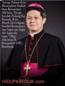 Mengecewakan quote dari Uskup Agung Jakarta, itu jargon politikus ketimbang pelayan Kristus. Peristiwa Kristus bangkit mengalahkan kematian, Paskah, adalah Peristiwa Besar bagi semua bangsa, termasuk Indonesia. Dan seharusnya dijadikan berita yang memberikan harapan dan pertobatan ditengah ketakutan manusia akan kematian akibat virus corona.
