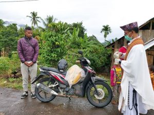 HIDUPKATOLIK.COM-MAYORITAS masyarakat di kampung Mbeling, Ruteng, Nusa Tenggara Timur, beragama Katolik. Ketika kebijakan social distance, stay at home, atau work at home, dari pemerintah membuat umat Katolik merayakan Misa di rumah masing-masing.