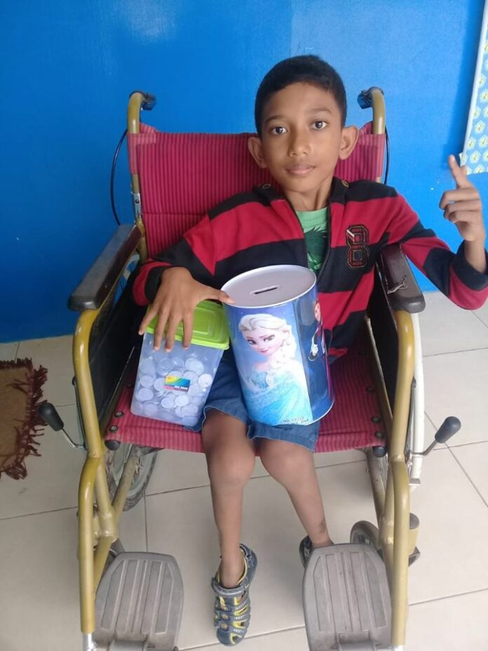 Remaja kelas 5 Sekolah Dasar Yos Sudarso Tanjung Ucang Batu Aji, Kota Batam, Kepulauan Batam, Provinsi Riau (Kepri) merupakan penyandang disabilitas sejak lahir. Ia menyumbangkan uang tabungan yang hampir delapan bulan ditabungnya melalui gerakan #angkat1saudara yang digagas Pemuda Katolik untuk bisa membantu para tenaga medis.