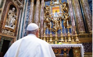 Sebelumnya, pada Minggu Prapaskah III, Bapa Suci berjalan menyusuri Kota Roma yang lengang. Ia menuju Basilika St. Maria Maggiore, tempat ikon Bunda Maria Salus Populi Romani disimpan. Kemudian, seperti berziarah, Paus berjalan sepanjang Via del Corso menuju Gereja San Marcello di Corso, di mana salib ajaib disimpan. Tahun 1522, salib ini diarak mengelilingi kota, ketika Roma diserang wabah besar. Paus berdoa memohon agar pandemi Covid-19 yang melanda Italia dan dunia segera berakhir.