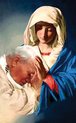 Karol Jozef Wojtyla yang tak lain adalah Paus Yohanes Paulus II, di masa kecilnya dipanggil Lolek, sedari dalam kandungan ibundanya, Emilia Kaczorowska telah berdevosi kepada Bunda Maria. Bahkan sang ayah, seorang tentara, Letnan Karol Wojtyla Sr., telah menanamkan dalam diri Lolek, agar senantiasa berdevosi kepada Bunda Maria. Maka, tak mengherankan jikalau kelak, ketika Uskup Agung Krakow kemudian terpilih menjadi Paus, moto yang dia pilih adalah Totus Tuus. Moto yang sesugguhnya terinspiasi dari ungkapan Bunda Maria: “Sesungguhnya aku ini adalah hamba Tuhan; jadilah padaku menurut perkataanmu itu.” Paus Yohanes Paulus II menggembalakan Gereja dari tahun 1978 hingga 2005. Dalam seluruh langkah penggembalaannya, ia menjadikan Maria sebagai inspirasi hidupnya secara total. Totalitas Bunda Maria sejak dipilih menjadi Bunda Tuhan hingga berdiri di kaki Salib, menjadi teladan sejati baginya.
