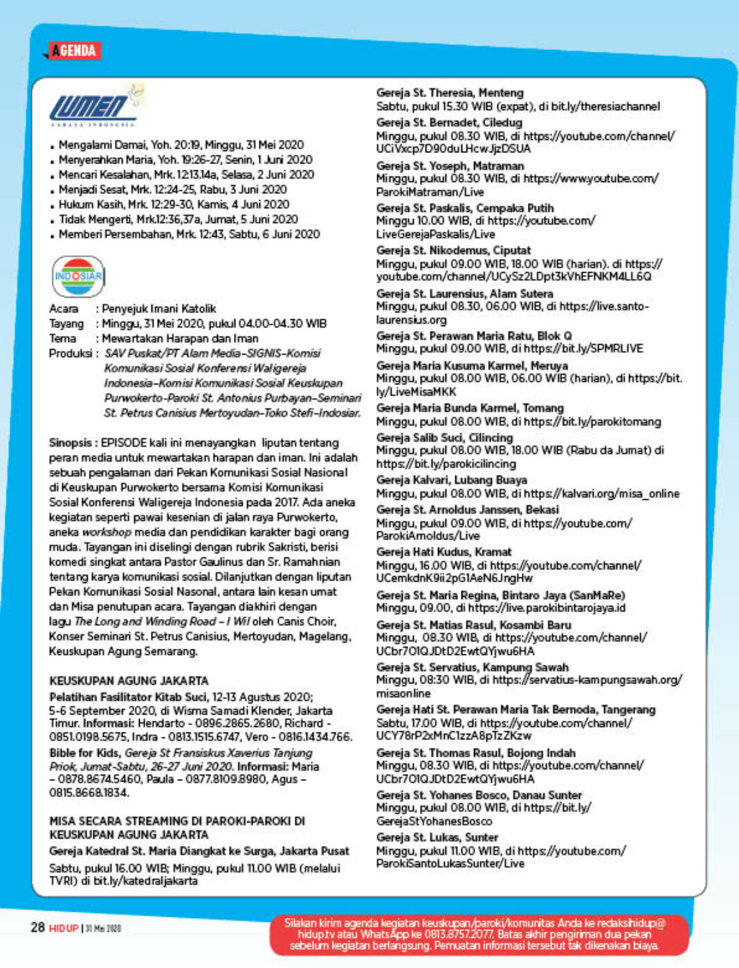 AGENDA HIDUP EDISI 22 TAHUN 2020