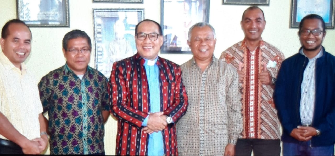 HIDUPKATOLIK.COM-PROVINSIAL SVD Ruteng Pater Paul T. Djogo SVD bersama Tim Pimpinan Provinsi (TPP) beraudiensi dengan Uskup Ruteng Mgr. Siprianus Hormat di Istana Keuskupan Ruteng, Senin, 8/6/2020.