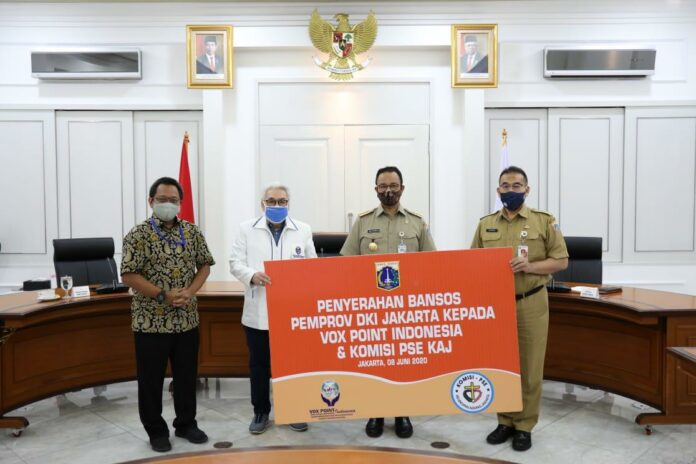 Anies Baswedan menyampaikan terima kasihnya atas kolaborasi Pemprov DKI Jakarta dengan Vox Point Indonesia dan Komisi PSE-KAJ dan berharap penyaluran bansos bisa tepat sasaran kepada umat yang membutuhkan.