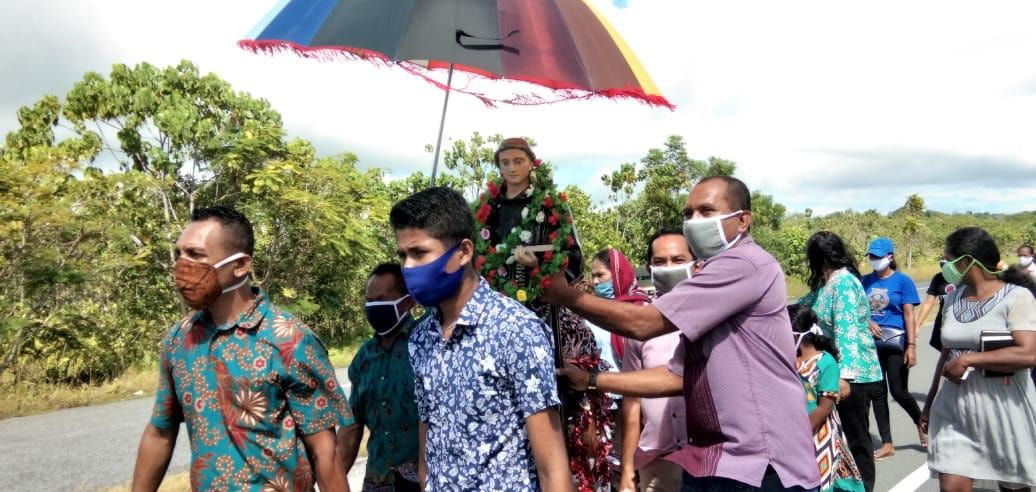 Sementara umat yang menunggu patung di rumah juga melakukan hal yang sama, memperhatikan protokol kesehatan. “Semua bertujuan agar memutuskan mata rantai penyebaran Covid-19,” kata Pastor Edmond.
