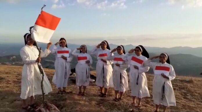 HIDUPKATOLIK.COM— Sinar mentari belum terlihat dari ufuk timur Umbria, namun para suster dari Kongregasi Suore Francescane Elisabettine Bige dari komunitas Asissi sudah bergegas menapaki gunung Subasio. Segera setelah sampai di puncak, para suster mengawali pagi itu dengan menyaksikan matahari terbit sebelum mengawali upacara. “Pagi itu kami awali dengan menyambut matahari pertama 17 Agustus 2020 di sana. Kami berdoa bersama, semoga matahari pertama ini menjadi tanda harapan utk perjalanan bangsa Indonesia Ke depan. Terutama di tengah situasi yang sulit ini” tutur Sr. Hermelinda Tamus.
