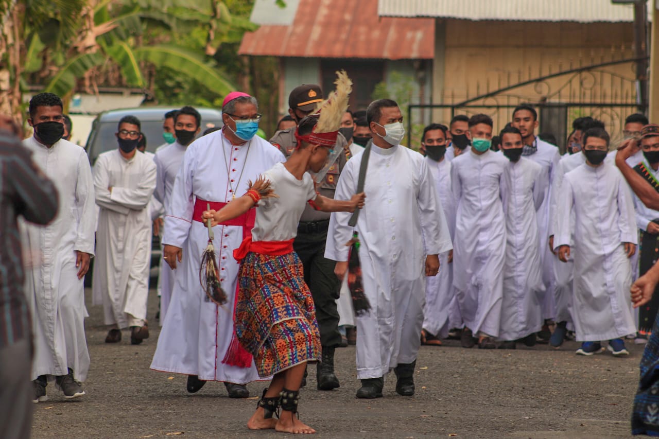 Penjemputan Uskup Maumere sebagai penanda Perayaan Ekaristi Ulang Tahun ke-65 Seminari Tinggi Interdiosesan St. Petrus Ritapiret sekaligus Peresmian Saint Peter Hall, Maumere.
