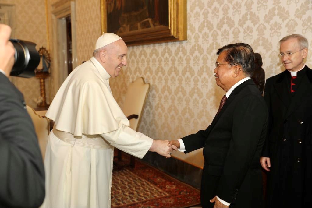 HIDUPKATOLIK.COM—Kedutaan Besar Republik Indonesia (KBRI) untuk Takhta Suci Vatikan mengeluarkan siaran pers resmi mengenai pertemuan dua tokoh besar Indonesia, Wapres RI ke-10 dan ke-12, Jusuf Kalla dan Mantan Menteri Hukum dan HAM serta Mantan Dubes RI Moskow, Hamid Awaludin dengan Paus Fransiskus. Pertemuan ini terjadi pada Jumat, 23 Oktober 2020 di perpustakaan pribadi Paus Fransiskus di Vatikan. Kedua utusan Indonesia ini merupakan bagian dari delegasi dewan juri dan komite ahli “2021 Zayed Award for Humanity Fraternity”, sebuah penghargaan bagi mereka yang memperjuangkan terobosan di bidang kemanusiaan secara universal.