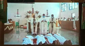 HIDUPKATOLIK.COM-“BEGE Kumak Bura” dan Tarian Hegong antar 4 Diakon Karmel menuju Kapela Dyonisius untuk ditahbiskan.