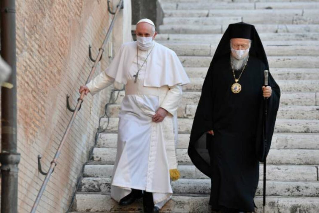 Paus Fransiskus sebagai pemimpin Gereja Katolik dengan senyum tulus mendekati Paus Emeritus Benediktus XVI, mengulurkan tangan kasih dalam satu jabat erat persaudaraan dan mencium tangan Paus Emeritus Benediktus XVI.