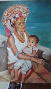 Di dua tempat itu Pastor Anton pernah menaburkan benih iman Katolik. “Poinnya sangat Biblis. Akan menjadi apakah anak-anak yang akan dilahirkannya? Itu saya lukis dalam simbol ibu dan anak,” ujarnya.