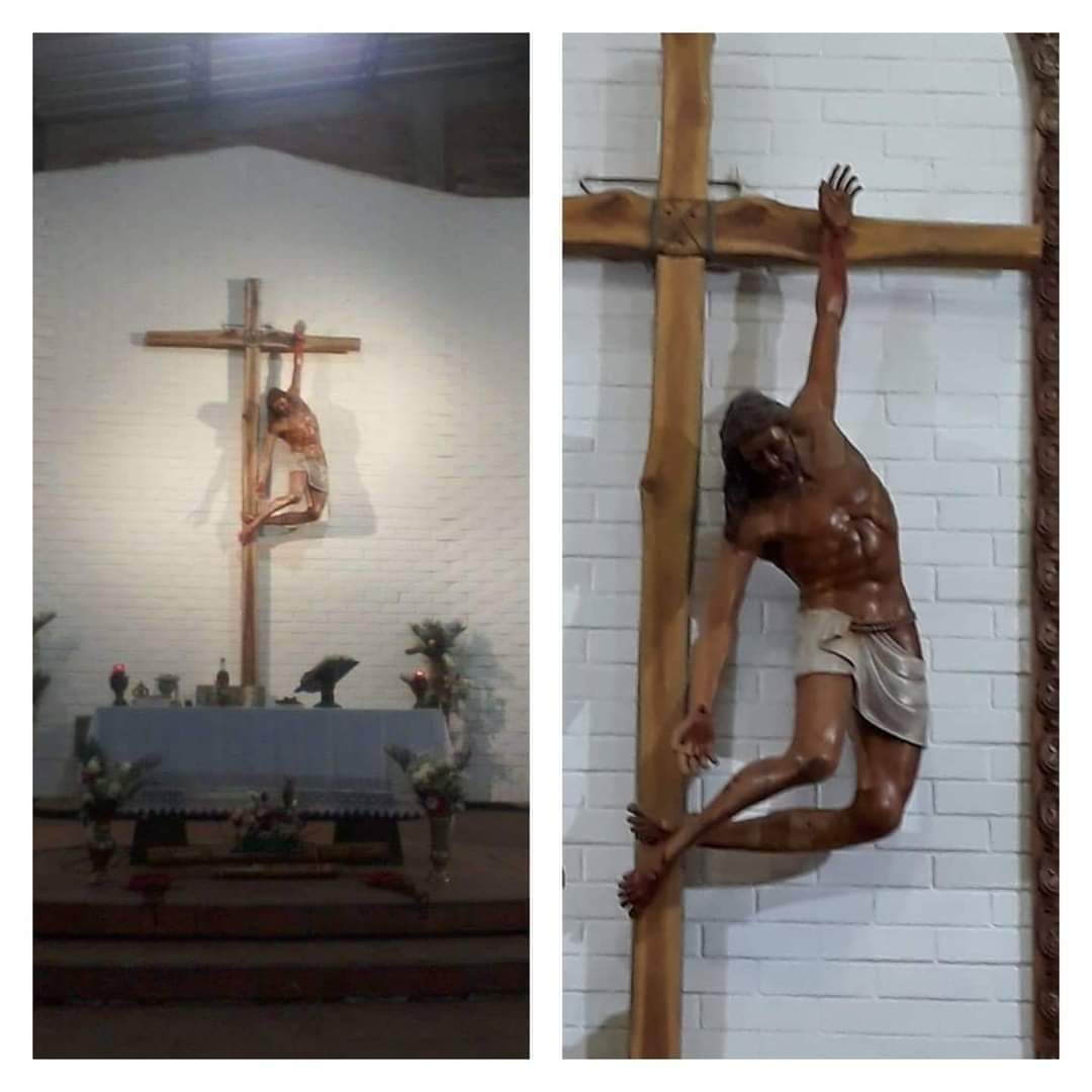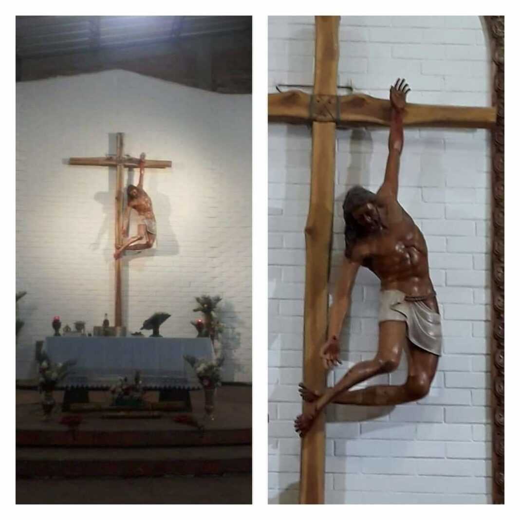 Patung salib tersebut merupakan sebuah salib pengampunan dosa. Salib itu unik dan berbeda dari salib-salib yang sering kita lihat di gereja, rumah kita, dsb. Pada salib tersebut, terdapat patung Yesus yang lengan kanannya lepas dari salib dan terulur ke bawah seolah ingin menarik atau memegang tangan seseorang. Orang-orang Spanyol menceritakan asal muasal patung salib tersebut seperti ini.
