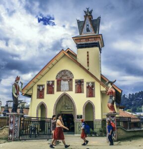 Begitu menginjakkan kaki di Paroki Kabanjahe, Kabupaten Tanah Karo, Pastor Leo juga terkagum-kagum pada benda-benda budaya Karo yang tak kalah menariknya dibanding dengan benda-benda budaya Batak Toba di Samosir. Ini adalah karya monumentalnya yang ketiga.