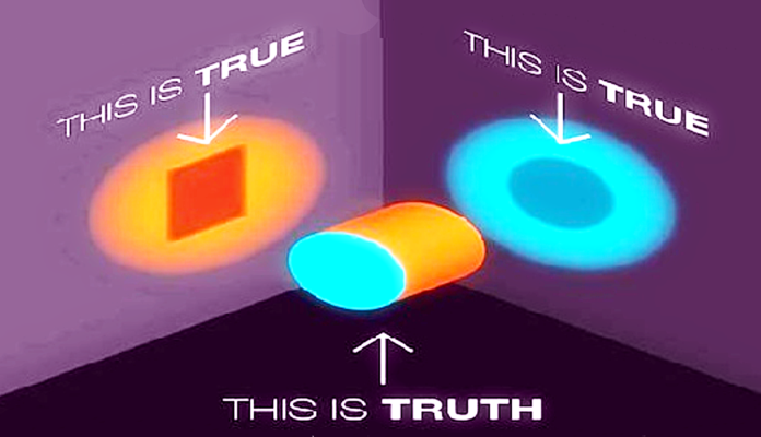 Di sisi lain, para sufi selalu mengajak umat manusia untuk semakin mampu melihat realitas sebagai apa adanya, terlepas dari kacamata pikiran insan itu sendiri. Nah, penggabungan dari berbagai sudut pandang dari insan yang memiliki keterbukaan pemikiran, akan membuat realitas dan kebenaran tampil lebih utuh, seperti dilukiskan dalam diagram “This is truth”, di awal tulisan ini. Memang menyakitkan, sih, ketika kebenaran yang sebenarnya, ternyata tidak sama dengan kebenaran yang saya yakini. Menerima kebenaran memang pahit, tetapi begitulah rasa jamu yang mujarab.