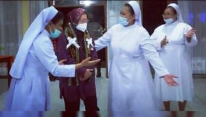 Seorang Suster PRR memainkan gitar, sementara suster yang lain menyanyikan lagu berjudul “kerja buat Tuhan”. Liriknya, “…. kerja buat Tuhan, saya kerja buat Tuhan, saya kerja di ladangnya Tuhan…”