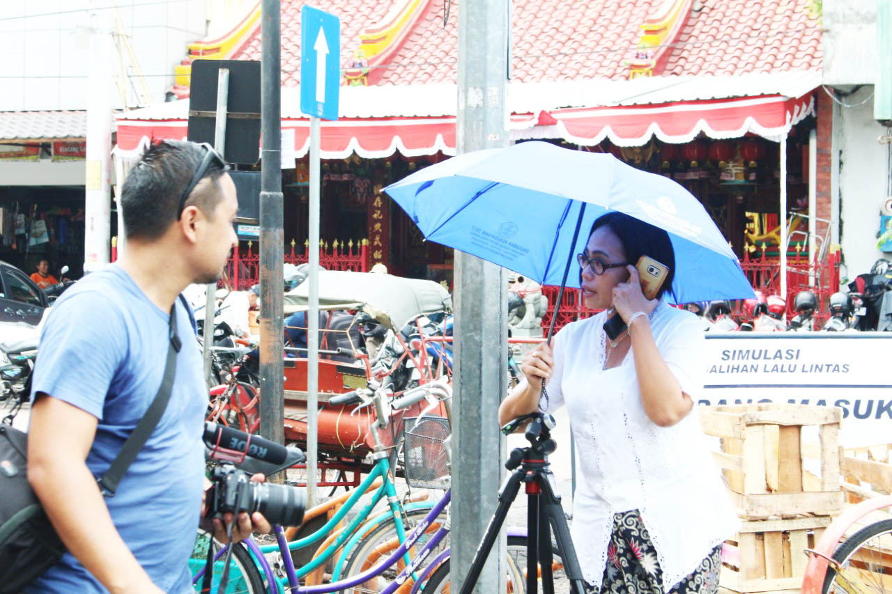 Hhmmm.., mungkin itu sekadar canda beraroma ironi dan begitulah situasinya! Sampai di sini tak perlu kiranya mengaitkan lagi dengan emansipasi. Kuatir jadi rancu. Sekilas cerita ringan, pernah sehabis shooting di Surabaya kuposting foto di sosial media bersama mini_onsteam. Kunamai begitu, merupakan hasil pemikiran dari jumlah team yang memang ‘mini’ dalam tiap produksi. Sementara onsteam adopsi dari kata Belanda, seharus onze tapi bila dibaca terdengar seolah ons, sehingga artinya kurang lebih, ‘team mini kami’. Berlima saja dan aku satu-satunya perempuan sekaligus menjadi ‘ibu’ (baca: pemimpin) bagi empat pria.