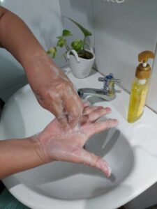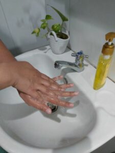 Dengan melakukan langkah-langkah cuci tangan maka diharapkan sudah membasuh seluruh permukaan tangan tanpa ada bagian yang terlewati yang menjadi tempat kuman bersembunyi. Ada 6 langkah dalam mencuci tangan secara umum dan kami tambahkan satu langkah sehingga total 7 langkah. Langkah Langkah cuci tangan sebagai berikut: