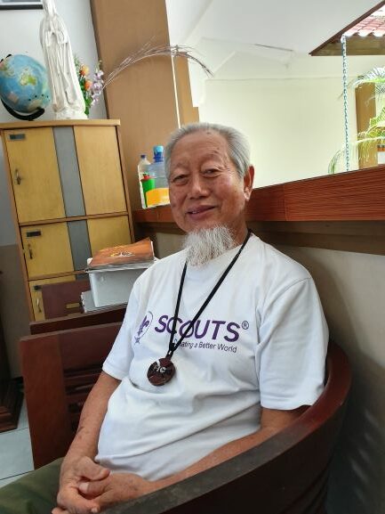 Berbincang dengan bruder berjanggut putih lebat, sepintas ibarat berdebat dengan seorang guru dan pendekar tua. Terpancar kebahagiaan hidupnya hampir 60 tahun membiara. Di ruang tamu di Biara FIC Don Bosco, Semarang, siang itu, ia berkisah tentang lika-liku karya pelayanan bagi masyarakat kelompok miskin. Lulus SGAK Putra Don Bosco, Semarang tahun 1960, dibaptis usia 17 tahun, setelah masa postulat satu tahun dan menjalani novisiat satu tahun dan mengucapkan kaul pertama, tugas pelayanan pun silih berganti. Nyaris semua bersentuhan dengan kepramukaan. “Saya kagum pada Bapak Pandu Dunia Lord Baden Powell dan Bapak Pramuka Indonesia Sultan HB IX.”