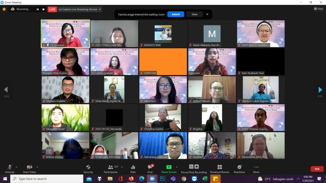 Demikian ditegaskan Moderaror Sekretariat Gender dan Pemberdayaan Perempuan Konferensi Waligereja Indonesia (SGPP KWI), Mgr. Kornelius Sipayung, OFMCap pada sambutan pembukaan Webinar Nasional “Membangun Spiritualitas dan Pengharapan dalam Penderitaan Akibat Ketidakadilan Gender” pada hari Sabtu, 30/7/2021. Webinar ini diikuti 294 peserta yang terdiri dari para pemerhati dan pejuang keadilan dan kesetaraan gender. Ch. Dwi Yuli Nugrahani, pengurus SGPP KWI, bertindak sebagai moderator.