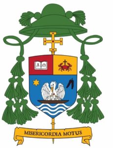 Akhirnya, di bagian bawah perisai terdapat pita berwarna kuning keemasan, bertuliskan motto penggembalaan Uskup Vitus dalam Bahasa Latin: “Misericordia Motus”, artinya “Tergeraklah hati-Nya oleh belas kasihan” (Luk 15:20). Demikianlah, Gereja diundang untuk menampilkan wajah Bapa yang berbelas kasih.