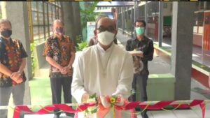 Potongan tumpeng diserahkan oleh Bruder Antonius Parjana, FIC kepada Ketua Panitia Antonius Wirato Adi. Selanjutnya acara pemotongan pita untuk membuka kuliah umum virtual. Dalam sambutannya mohon dukungan agar SMP Domsav tetap eksis dalam melayani bidang pendidikan.