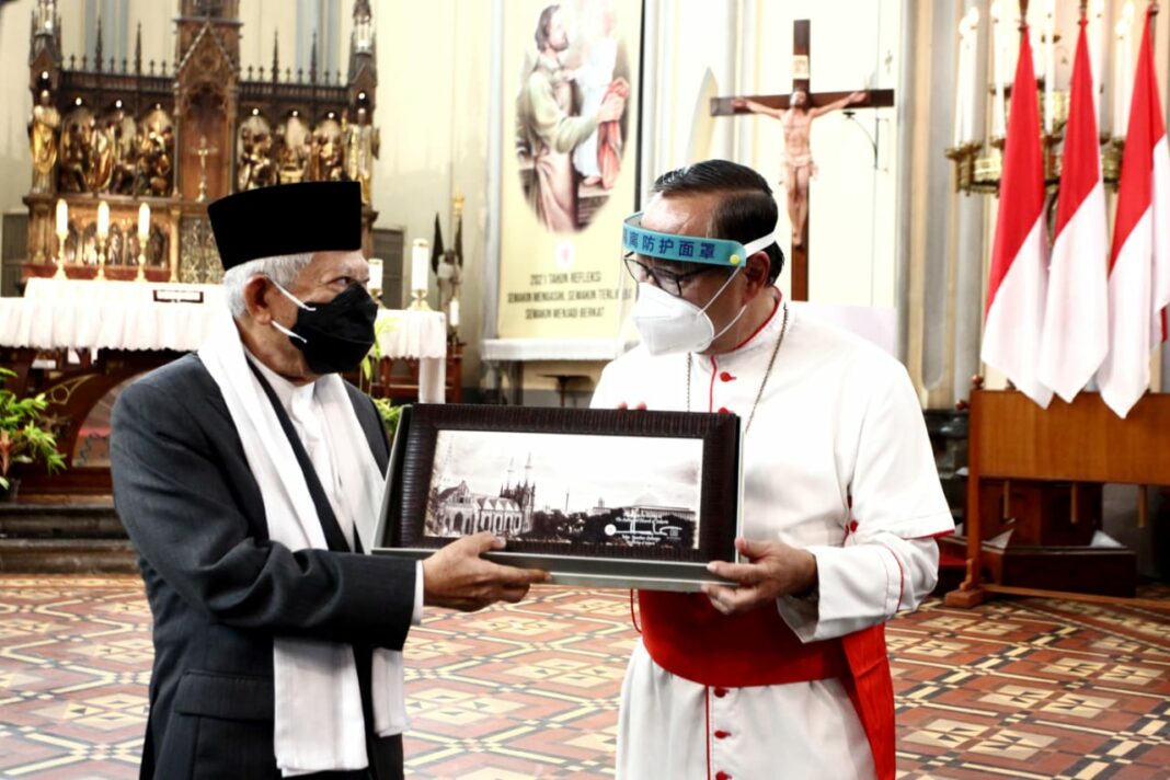 HIDUPKATOLIK.COM – Wakil Presiden Republik Indonesia (Wapres RI) Ma’ruf Amin mengadakan peninjauan penerapan protokol Kesehatan di Masjid Istiqlal dan Gereja Santa Maria Diangkat Ke Surga, Katedral, Jakarta sekaligus peninjauan pembangunan Terowongan Silahturahmi pada Jumat, 27 Agustus 2021. Ma’ruf didampingi oleh Menteri Pekerjaan Umum dan Perumahan Rakyat Basuki Hadimuljono, Imam Besar Masjid Istiqlal Nasaruddin Umar, Kepala Sekretariat Wapres Mohamad Oemar dan Staf Khusus Wapres Bambang Widianto.