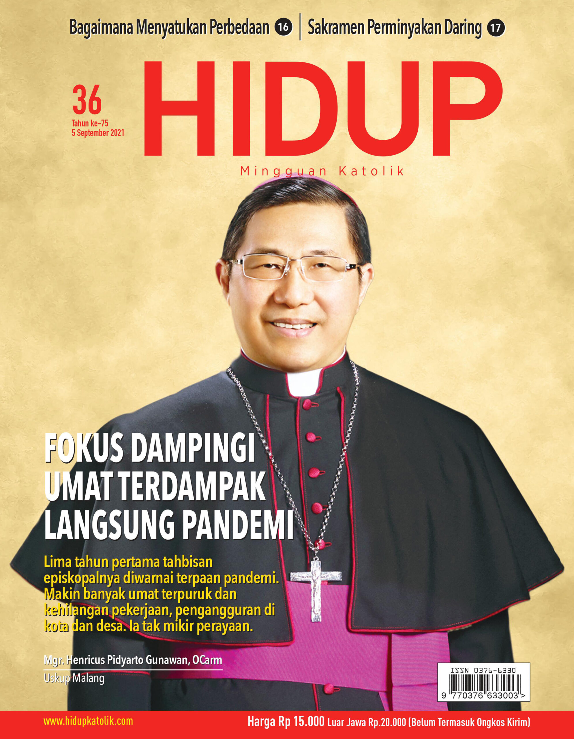 SAJIAN UTAMA: LIMA tahun sudah masa episkopal Mgr. Henricus Pidyarto Gunawan, OCarm sebagai Uskup Malang. Karena masih pandemi, sang uskup tak berniat merayakannya mengingat makin banyak umat yang kehilangan pekerjaan dan kemiskinan meningkat. Namun, momen ini tetap saja dijadikan sebagai waktu untuk berefleksi atas perjalanan reksa pastoral. Simak wawancara khusus dengan Mgr. Pidyarto.