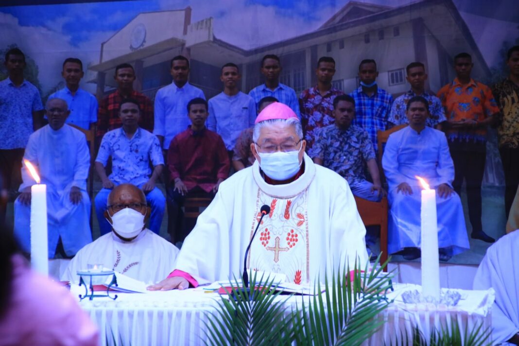 “TOR harus bisa menghasilkan (calon) imam yang bermutu bukan cuma sekadar calon imam saja tetapi harus mempunyai kedewasaan intelektual, spiritual, dan emosional. Hanya imam yang berkualitas yang bisa berdiri tegak menghadapi dunia ini dan membawa dunia kepada Kristus,” ujar Uskup yang masih menjabat sebagai Amdinistrator Apostolik Keuskupan Amboina, Maluku ini.