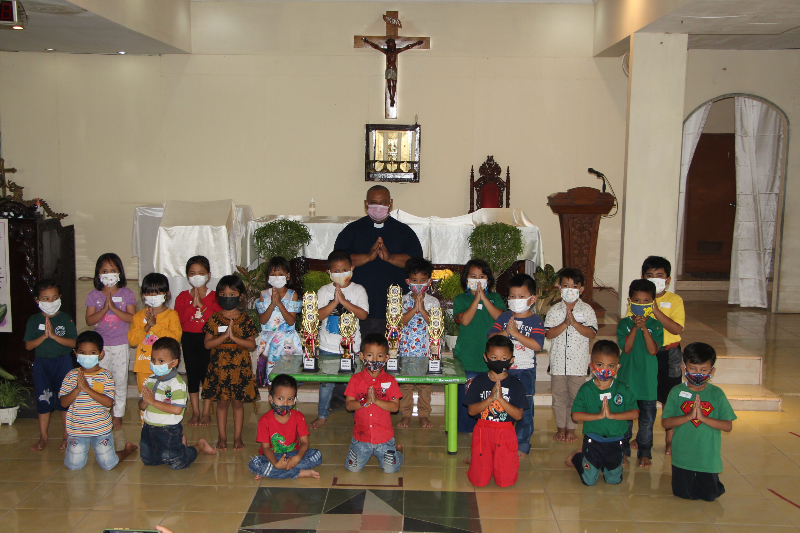 HIDUPKATOLIK.COM – SEJAK pagi, puluhan anak taman kanak-kanak dan murid Sekolah Dasar mulai memadati Kapel St. Vincentius Gunung Putri. Kegembiraan dan sukacita tergambar di raut wajah mereka. Sejak pandemi bergulir, aktivitas anak-anak di kapel Gunung Putri dibatasi. Maka momen perjumpaan ini adalah momen berkesan, setidaknya kesempatan pertama untuk bisa “bermain”.