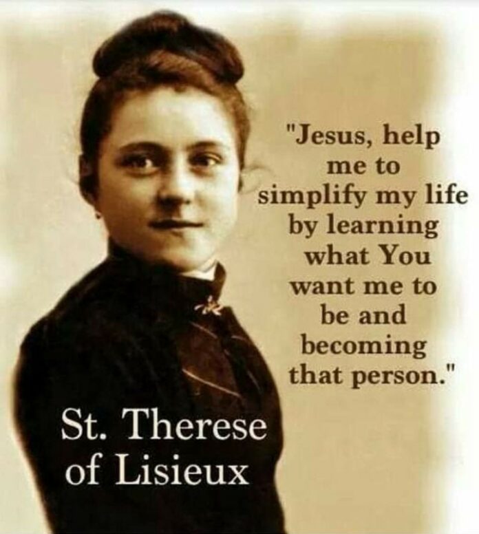 YESUS, HELP ME TO SIMPLY MY LIFE BY LEARNING WHAT YOU WANT ME TO BE AND BECOMING THAT PERSON. (Theresia dari Lisieux)