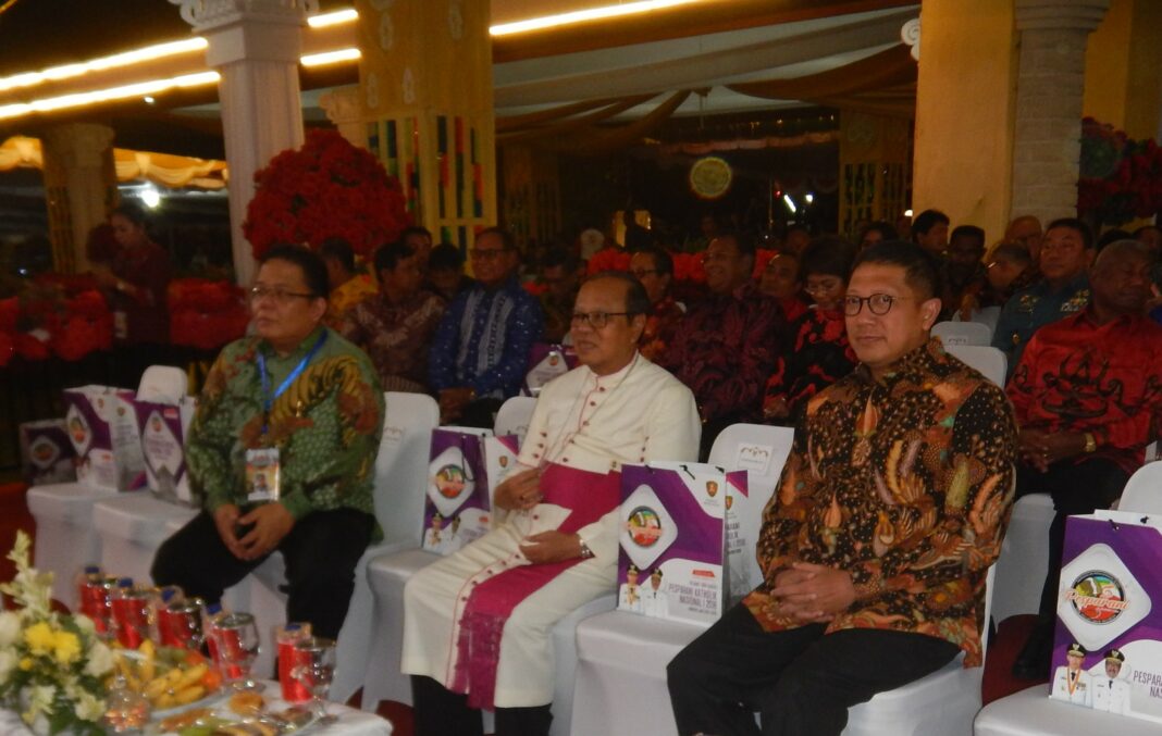 Ketua KWI, Ignatius Kardinal Suharyo (panggung, kedua dari kanan) mendampingi Menteri ESDM, Ignasius Jonan (jas hitam) mewakili Presiden Joko Widodo membuka Pesparani I di Ambon, Maluku, 2018. (Foto: Dok. LP3KN)