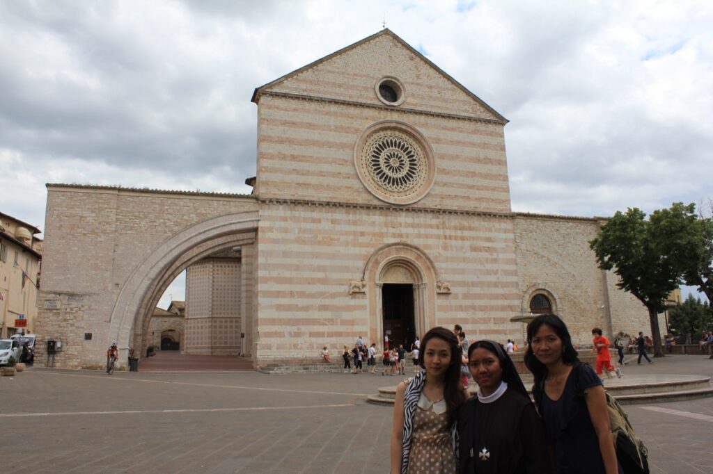 Tujuan pertama kami tentunya Basilika Santo Fransiskus. Letaknya di puncak bukit sehingga kita dapat melihat pemandangan sekitar dengan mudah. Basilika yang besar ini terdiri dari dua bagian. Bagian bawah dibangun pada tahun 1228 – 1230, segera setelah Fransiskus, memperoleh gelar Santo. Bagian bawah basilika selain sebagai tempat Misa juga tempat Santo Fransiskus dimakamkan. Sedangkan bagian atas dibangun pada 1239-1253. Basilika memiliki plaza sangat luas pada bagian bawah dan taman yang luas pada bagian atas. Setelah puas melihat-lihat basilika dan tentunya juga berdoa dalam gereja, kami mulai menyusuri jejak-jejak santo pendiri Ordo Fransiskan ini.