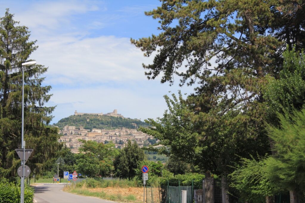 Assisi masuk wilayah Umbria dan tidak besar. Banyak destinasi menarik di kota ini, dan dapat dijelajah dengan jalan kaki dalam satu hari. Letaknya di perbukitan. Dari stasiun menuju pusat kota, jalanan menanjak, dan kami tempuh jalan kaki sekitar 45 menit. Pemandangan sekeliling yang terbuka, membuat tak terasa lelah. Setiba di kota, kita dapat menemukan kehidupan modern seperti café, hotel, toko roti, toko suvenir, tapi hampir semua bangunan adalah bangunan abad pertengahan. Dominan dengan dinding pasangan bata ekspos dan pintu berpelengkung. Selayaknya warisan abad pertengahan, jalan-jalan di kota berupa susunan batu. Mobil, untung sangat jarang, harus berjalan pelan karena banyak turis berseliweran.