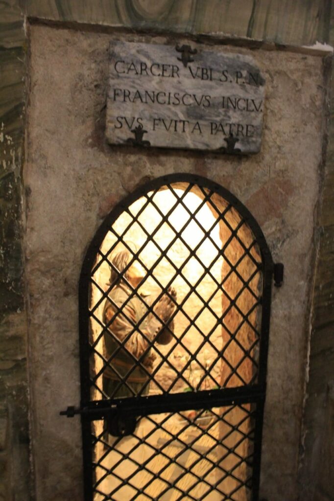 Tindakan Francesso mencuri kain di toko, membuat ayahnya marah besar dan Francesco dikurung selama beberapa waktu di satu kamar gelap di rumah. Kamar kecil ini, sekarang terang karena ada lampu dan juga patung Francesco sedang berlutut. Melalui teralis jendela kamar, kami bisa mengintip kondisi kamar dari jalan setapak samping rumah.