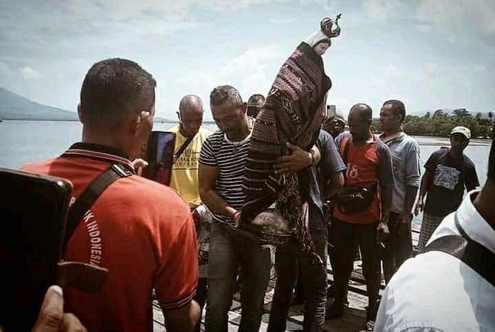 Rudy mengatakan, seorang teman akrabnya Muslim bernama Saiful Nene menjemput ke perahu dan langsung mengalungkan selembar kain (selendang tenun). Saiful pun membawa sekaligus mengantar patung dengan menggunakan mobilnya ke rumah Rudy.
