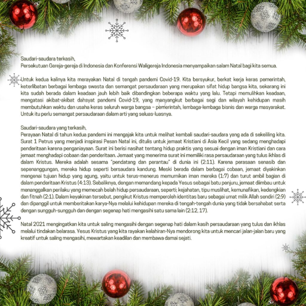 Pesan Natal Bersama Konferensi Waligereja Indonesia dan Persekutuan Gereja-Gereja di Indonesia 2021